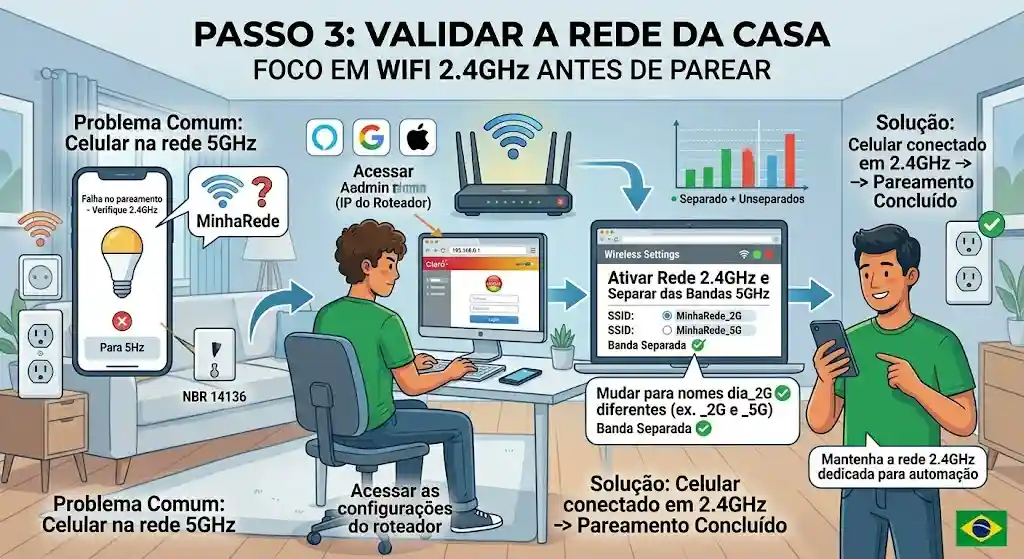 Passo 3: Validar a Rede da Casa com Foco em WiFi 2.4GHz Antes de Parear