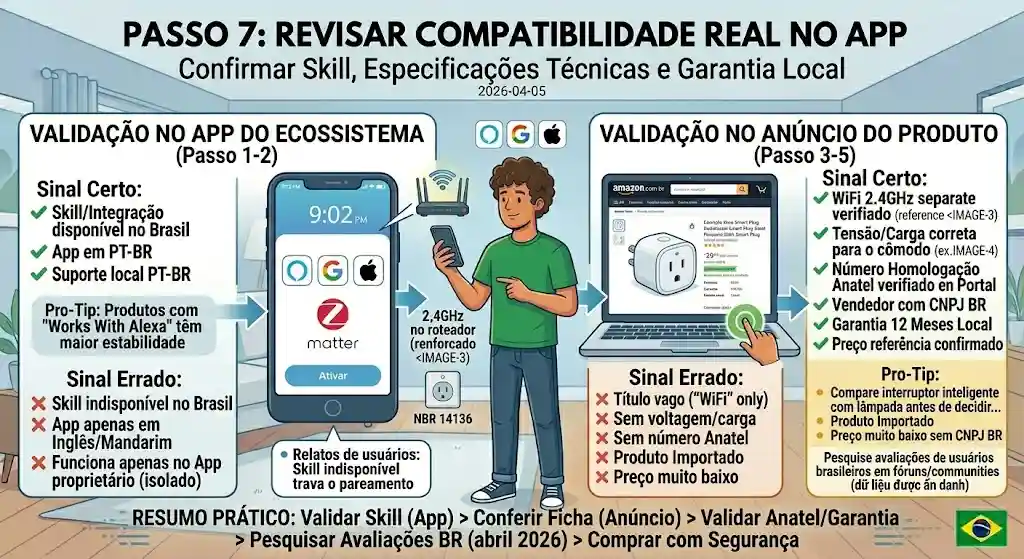 Correção rápida: Busque o nome do produto no app do ecossistema antes de comprar. Se não aparecer, a integração não é nativa.