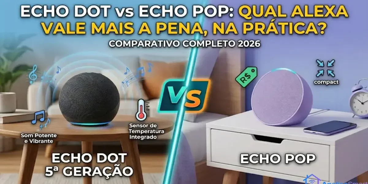 A escolha entre Amazon Echo Pop e Amazon Echo Dot 5ª geração se resume a uma pergunta simples: você quer pagar menos por uma Alexa básica para comandos e quarto pequeno, ou investir R$ 80,00 a mais por som melhor, sensor de temperatura e automação que amplia o uso diário?